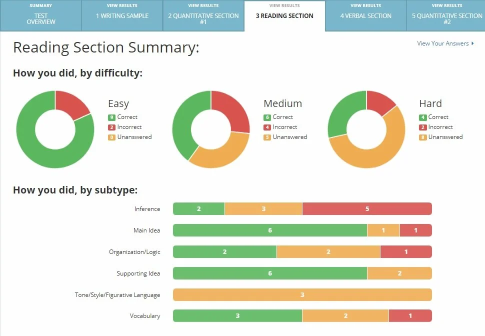 Within a few days, you’ll get a personalized score report that breaks down your performance by section and question type. We highlight your strengths and pinpoint exactly where there’s room for improvement.